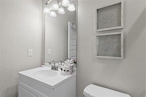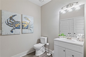 Bedroom 5 & Bath 5: Bunk Room (twin over full x 2)/ The private attached bathroom features a shower/ tub combo.