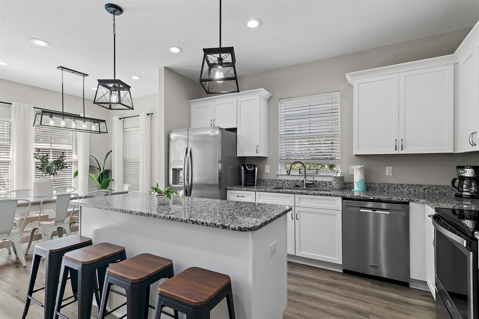 Dining Area: Accommodate 8 plus 3 at the kitchen island. A high chair is provided.