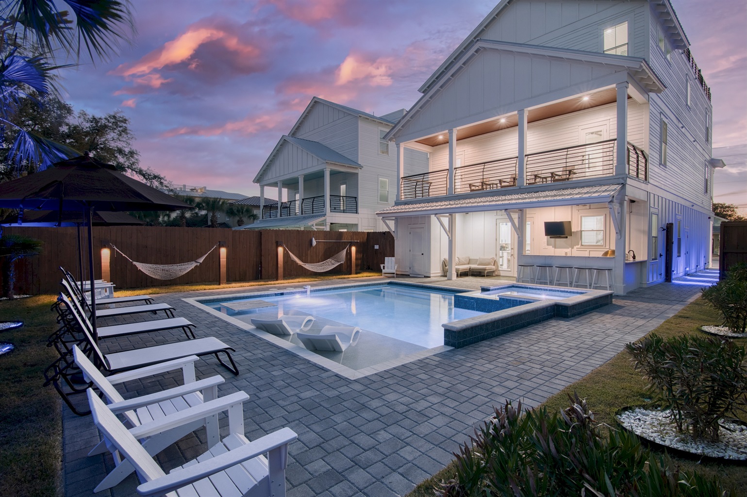Welcome to Coral Casita, a newly constructed Gulf Coast luxury sanctuary thoughtfully designed for multi-family groups seeking an elevated beach experience. Styled in an elegant coastal design, this spacious retreat blends refined comfort with standout indoor-outdoor living—just a short walk from Destin’s sugar-white beaches.